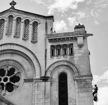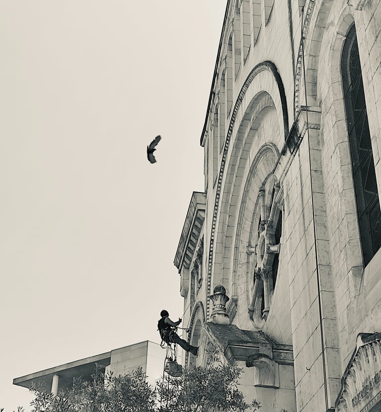 Maçonnerie et peinture réalisées avec précision, en toute sécurité sur des façades difficiles d'accès.